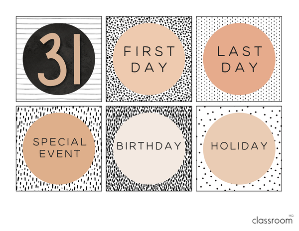 This editable classroom calendar in a mix of black and white prints and boho neutral colours is just what you need to keep your classroom organised! With it's modern neutral colour palette and is bound to suit all year levels! Matching weather display and days of the week have been included for your morning meetings.