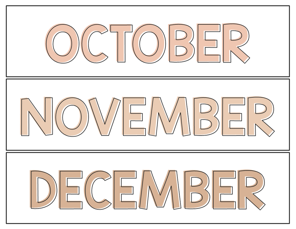 • Months of the Year Cards (3 different sets of designs - long rectangular) - 3 to an A4 page editable text
