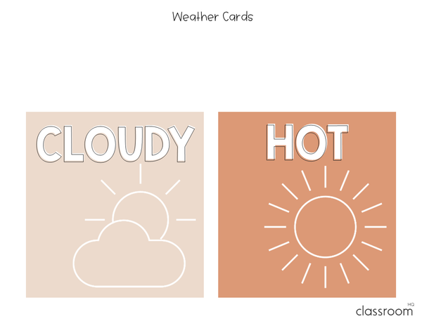 • Weather Cards (neutral backgrounds + editable text) - 2 to an A4 page