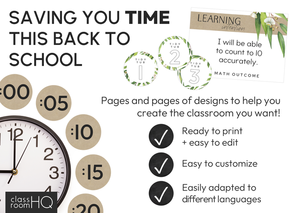 Bring calm, nature-inspired style into your classroom with this Editable Classroom Labels and Signs Pack featuring a modern Australian eucalyptus theme. Designed with earthy greens, soft neutrals, and elegant gum leaf illustrations, this resource will help you create a beautifully organized and inviting learning space.