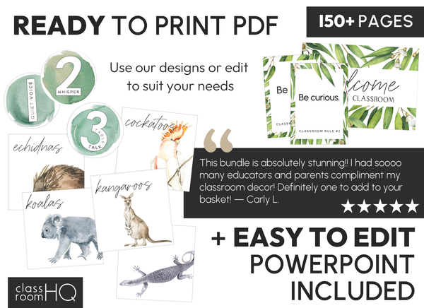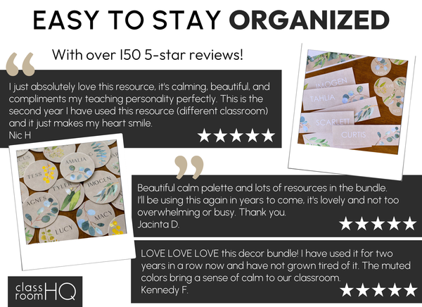 Whether you’re a new teacher setting up your classroom or refreshing your space mid-year, this Australian eucalyptus classroom decor set helps you stay organized while creating a welcoming environment for your students.