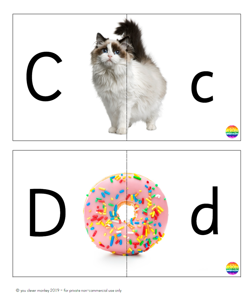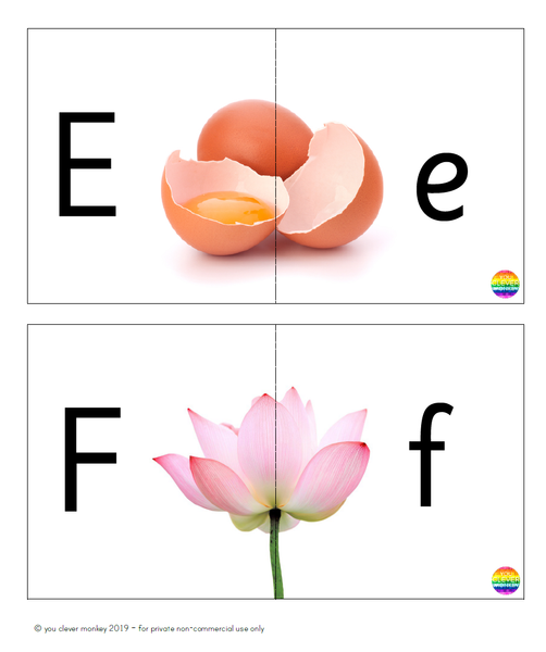 These beautifully clear 2 part puzzle cards are a fun way to introduce young children to the alphabet and letter sounds.