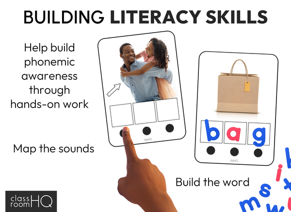 Using sound boxes will help your students build their phonological awareness skills. They will help students identify the beginning, middle, and ending sounds making it easier for them to segment CVC words correctly.