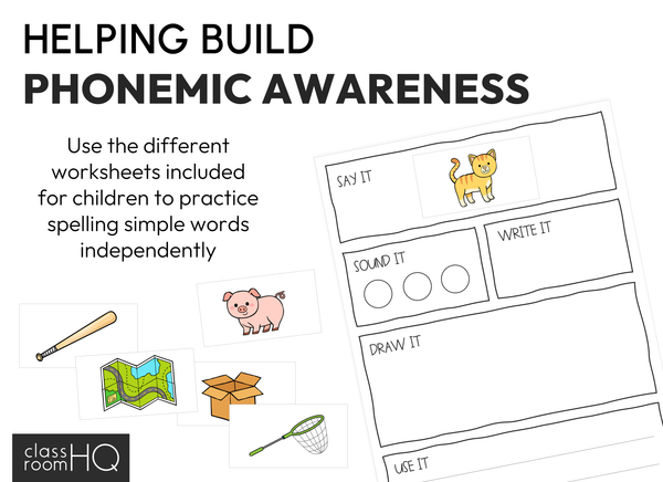 This Science of Reading aligned resource is perfect for building phonemic awareness skills in kindergarten and first grade students. These mats are perfect for preschoolers and kindergarten aged children learning to blend individual sounds into words. With a focus on CVC words, they're ideal for teaching students how map words by connecting speech sounds (phonemes) to letters (graphemes).