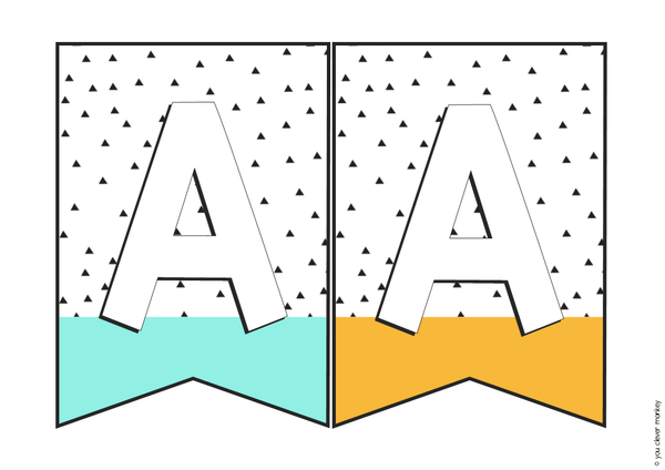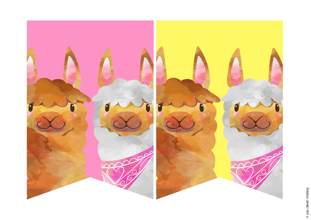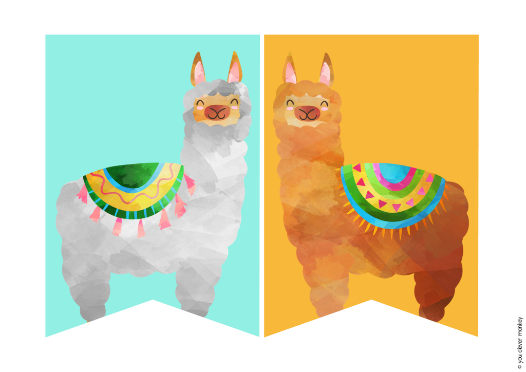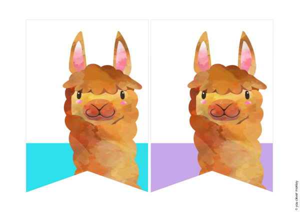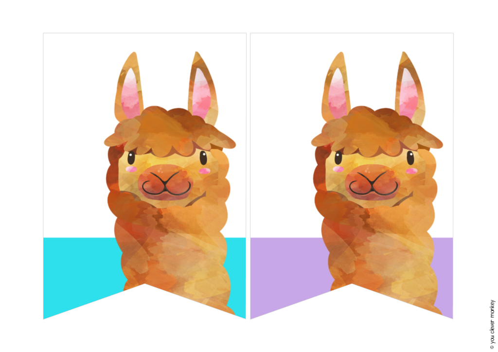 - editable bunting flags/penants (60+ styles - solid color/black+white patterns/llamas and more to choose from) - 2 to an A4 page but can be resized.