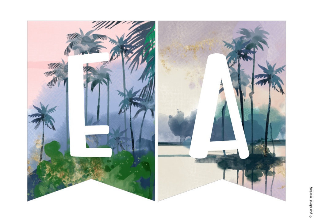 - TROPICAL COAST Alphabet Bunting (black lettering)