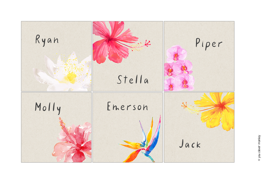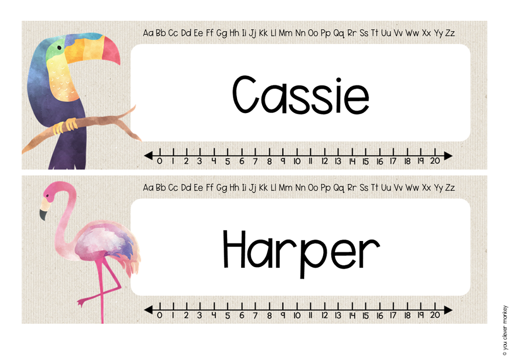 DESK PLATES – multiple sets of designs included (2 sets to choose from). Editable text + alphabet and number line. All of the elements can be moved or deleted.