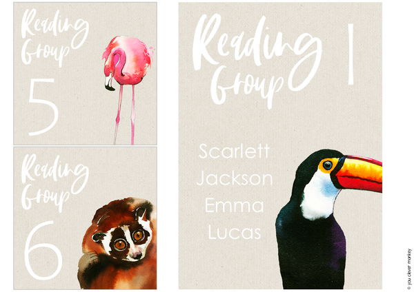 READING GROUPS SIGNS - smaller square + full page posters included to add to your book bins. Multiple designs with editable text.