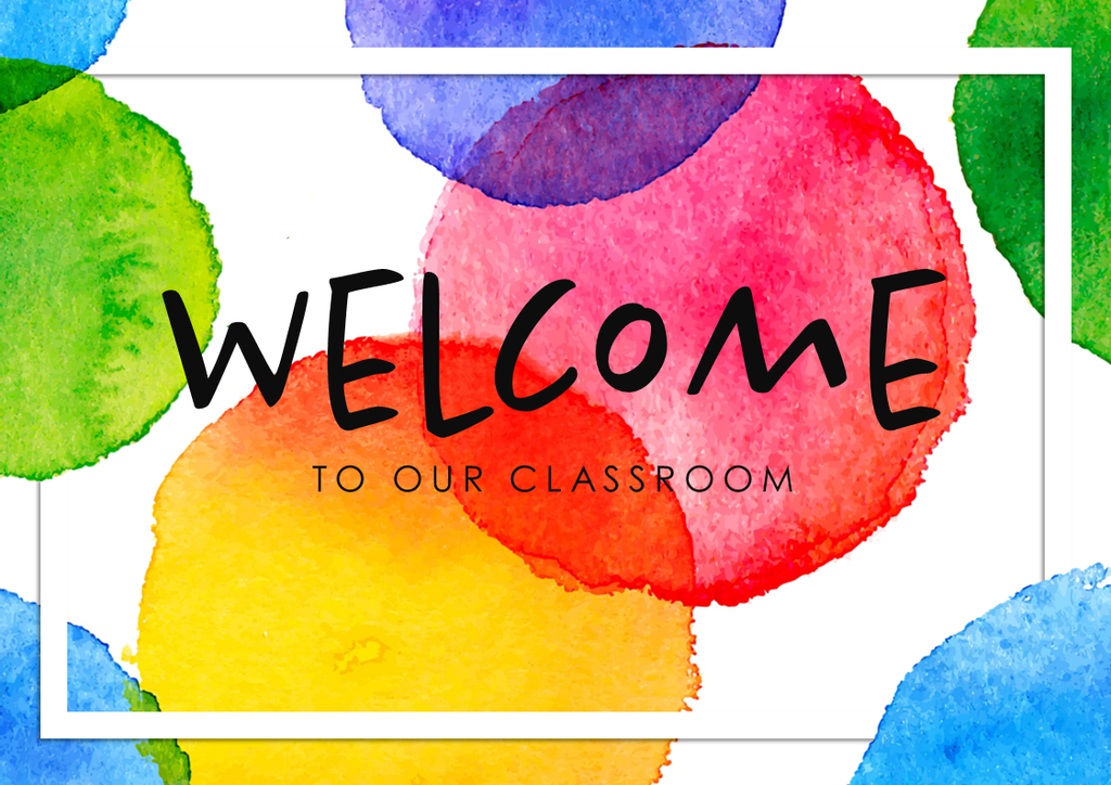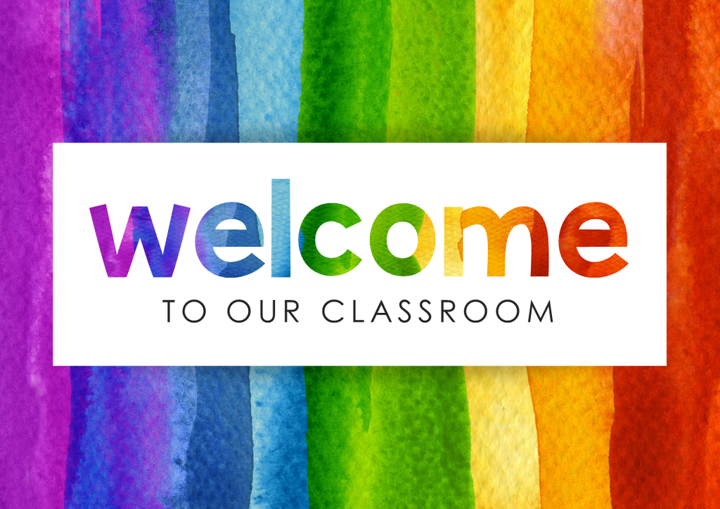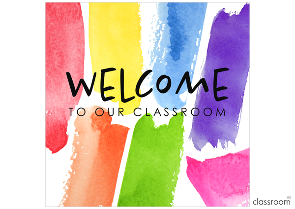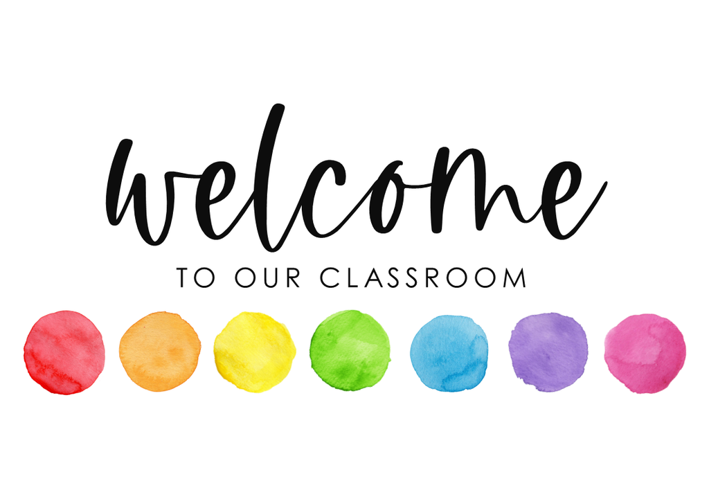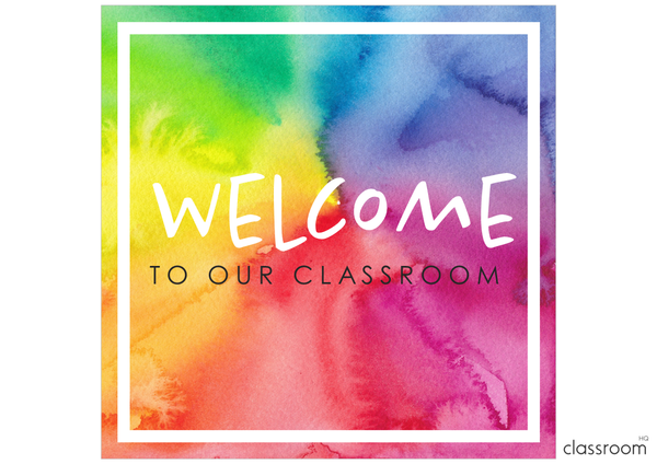 • 'WELCOME' signage - single letter in larger round label in rainbow order - 2 per  page editable text