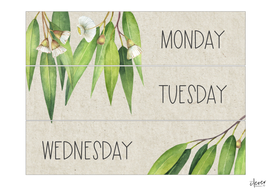 ✅ Modern Eucalyptus Design – calming, nature-inspired classroom look