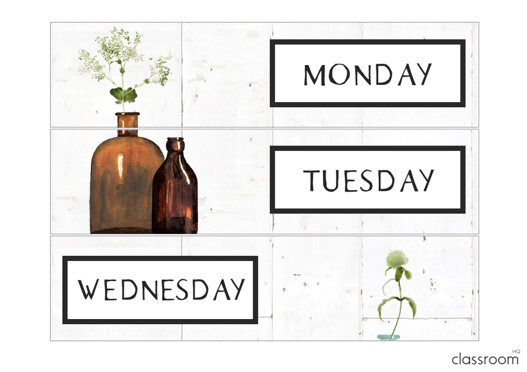 - 7 different modern farmhouse inspired label designs suitable for use with 10 drawer rolling teacher cart
