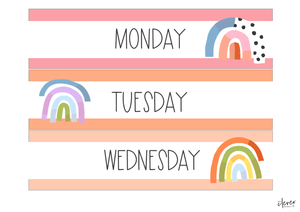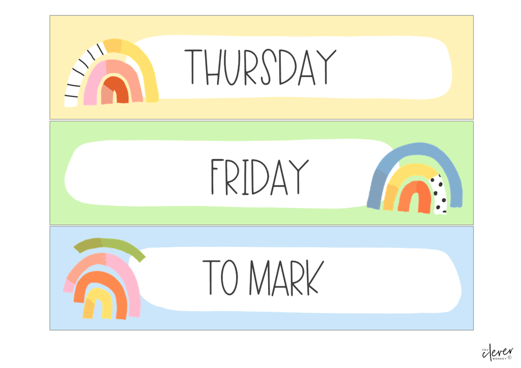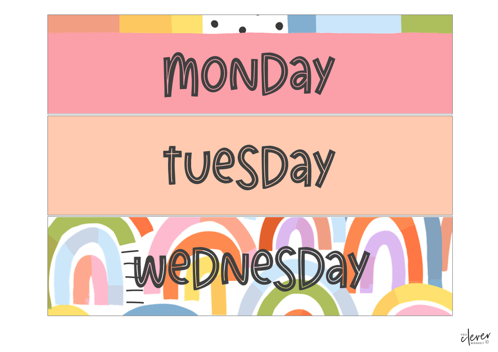 Choose from nine different modern rainbow designs in a mix of soft pastel colors and stylish black and white patterns. It's never been easier to make your classroom look the way you want!