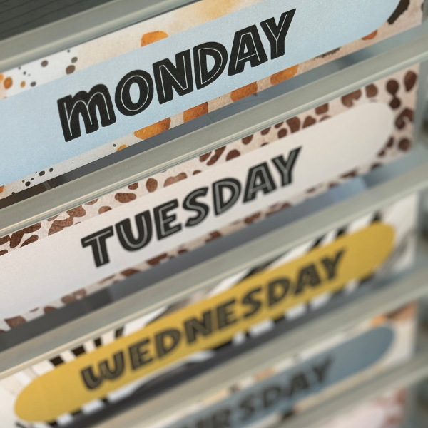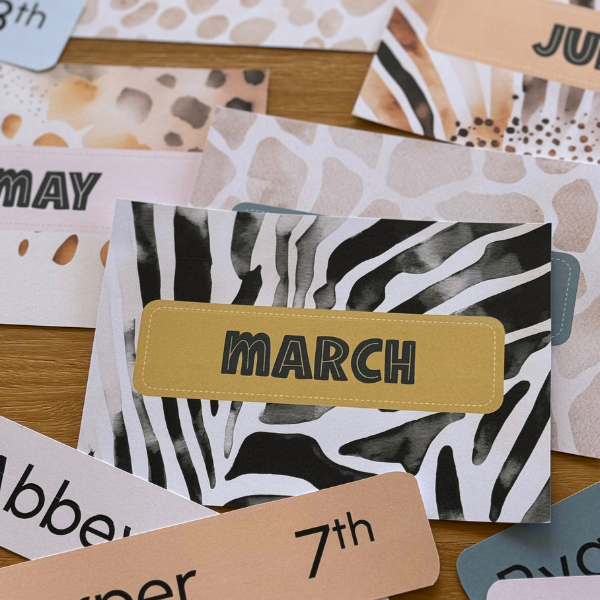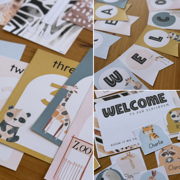 Our wild animal print alphabet posters, number cards, and other classroom displays can easily be edited to suit your space while our versatile animal labels, name tags, signs, binder covers, calendars, templates and posters will make organizing your classroom materials and creating your learning centres easy while adding a touch of sophistication to your classroom with our modern colour palette and wild animal prints