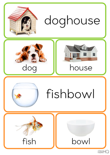 These colourful word sorting cards with nonfiction real life photos are fun hands-on way to introduce young children to compound words.
