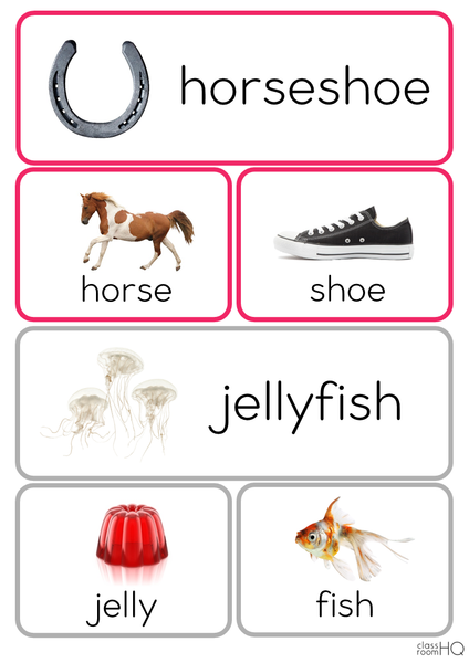 A perfect activity for small group work, literacy centres or morning tubs. With real life photos included as prompts, children will love trying to make new compound words from these cards.