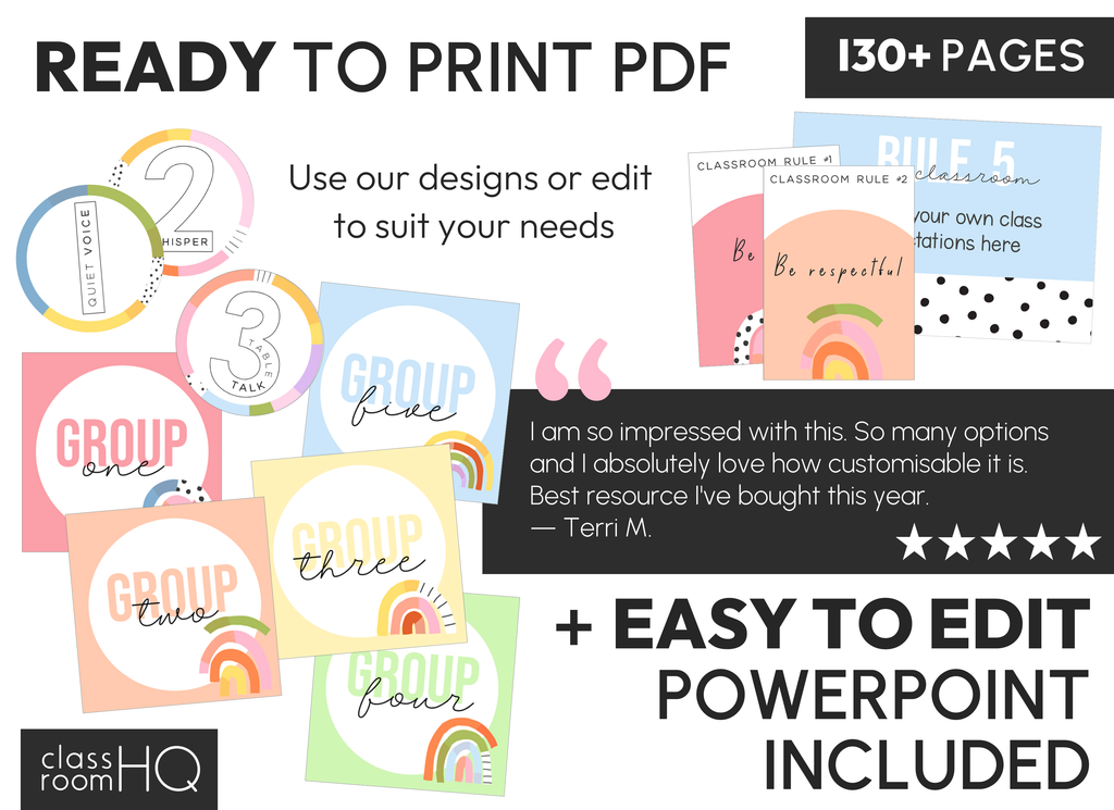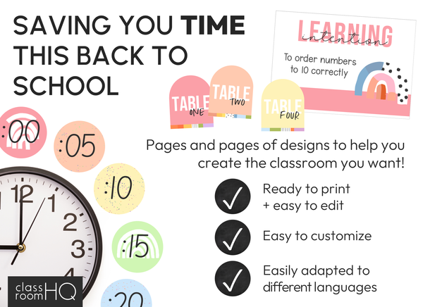 Plenty of ready to print designs included - clock labels, table numbers, reading group signs, posters and so much more - you will not be disappointed!