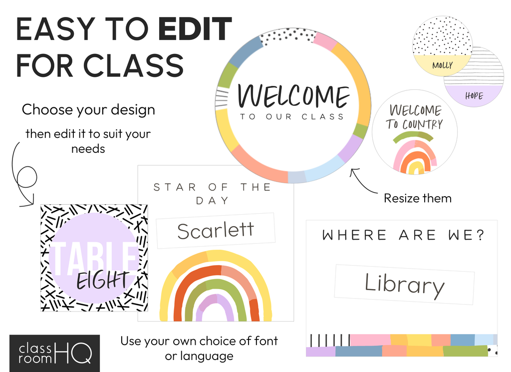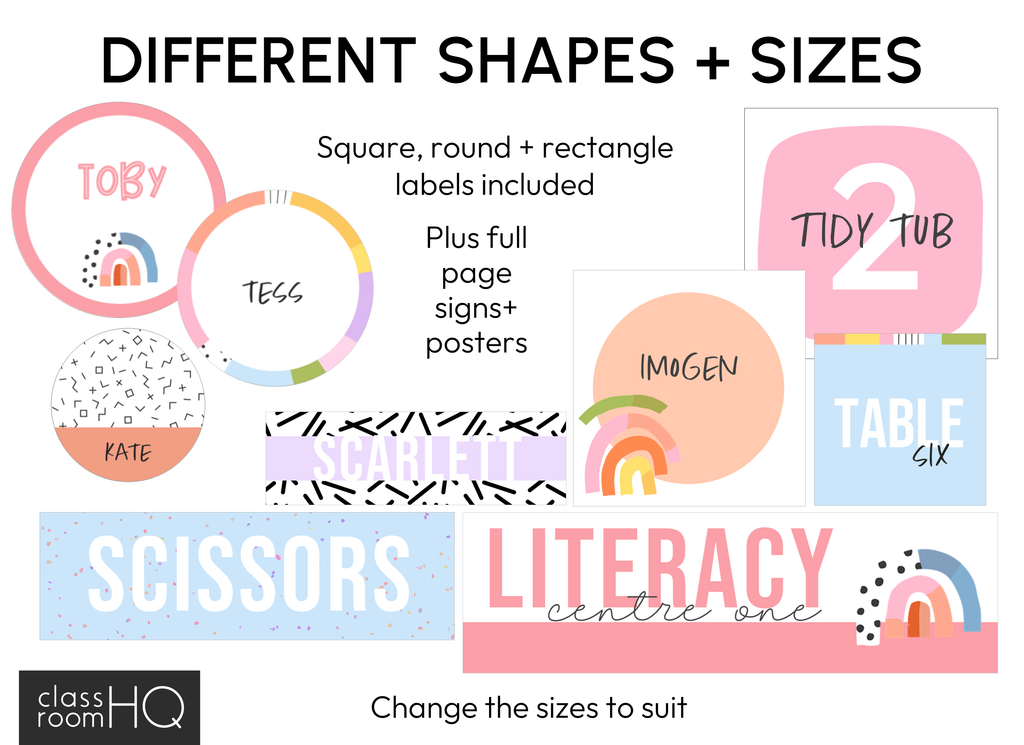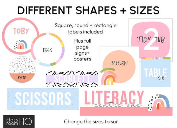 In a huge range of pastel tones, this rainbow classroom pack of labels and signs is easy to edit - choose your design, use our fonts or add your own then press print!