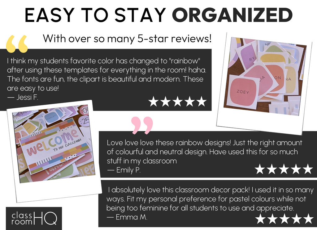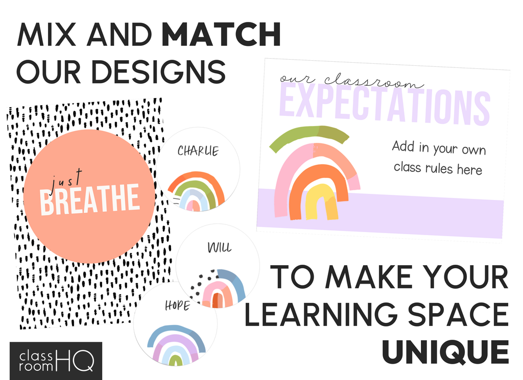 Saving you so much time setting up your class this back to school - use our pastel rainbow theme to label students desks, trays, tubs, lockers, teacher and office supplies... the choices are limitless! The thoughtful design allows you to create a welcoming classroom space with a variety of modern rainbow designs without overwhelming your class.