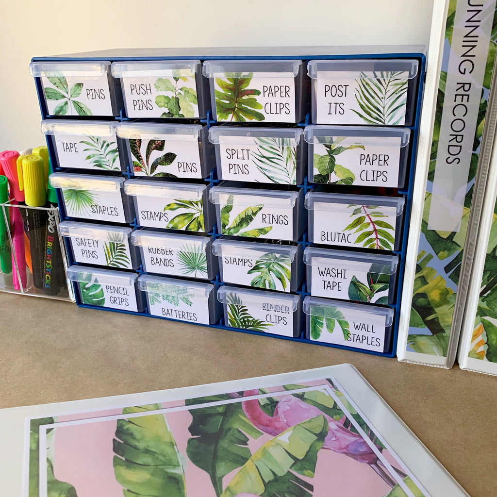 Made to match our TROPICAL Classroom Decor, choose from pages of different designs to organize all your office supplies and keep your desk drawers neat and tidy!