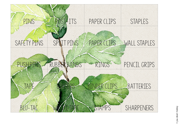 These labels have been made to fit Bunnings Australia's Handy Storage 20 Drawer Compartment Organiser (link included in file) but can easily be resized to suit any storage container.