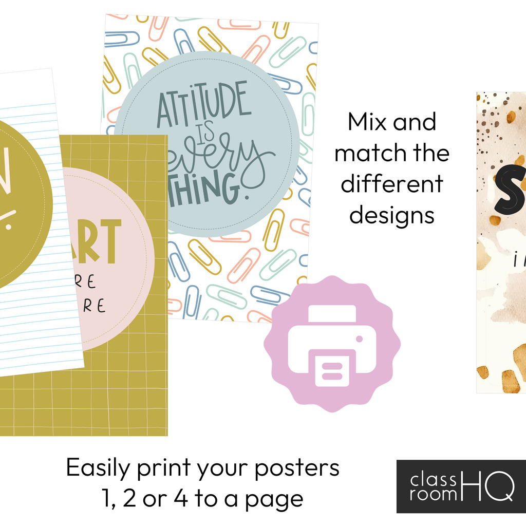 Versatile Display Options: Suitable for bulletin boards, wall displays, or individual student desks. These posters can be used throughout the school year to inspire and motivate students.