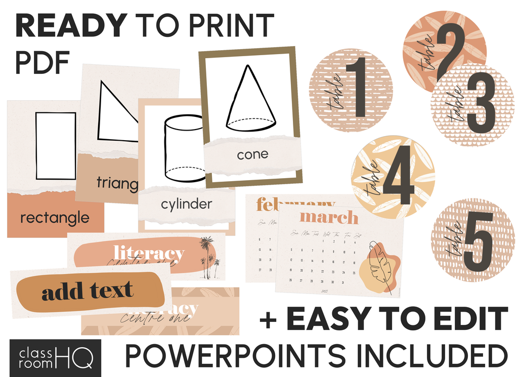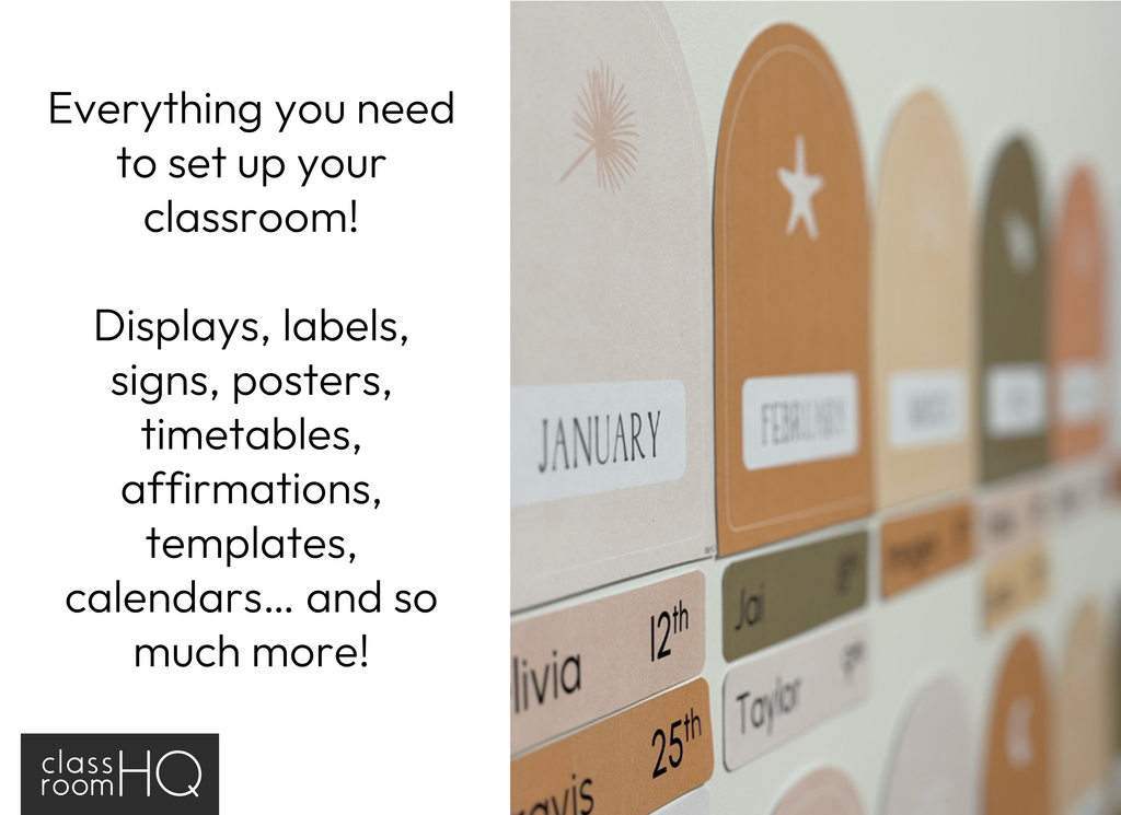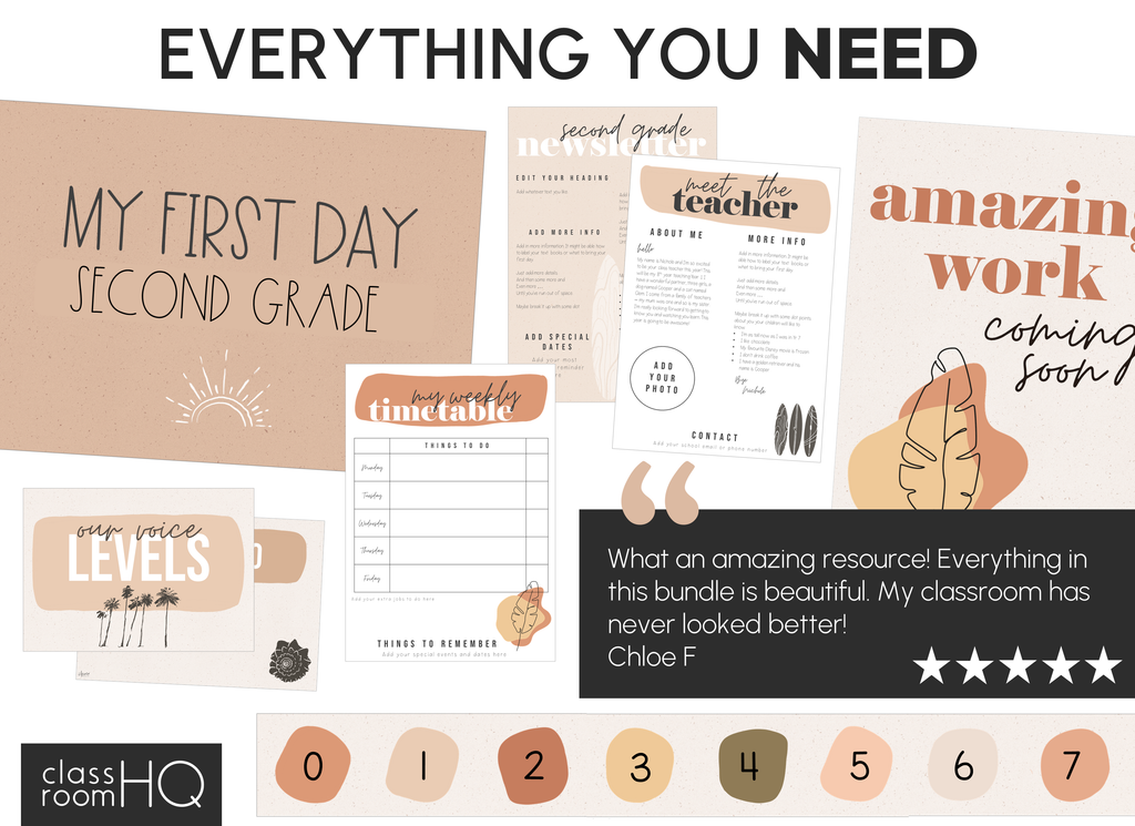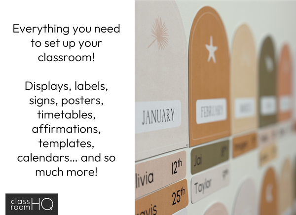 With easy to edit labels, posters, calendars, word walls, book covers, timetable, bunting and so much more all with sandy backgrounds and sunny pops of yellow and orange paired with calming earthy modern boho inspired tones and vintage summer time artwork! Setting up your classroom using our BOHO SUMMER pack has never been easier! Or better value...