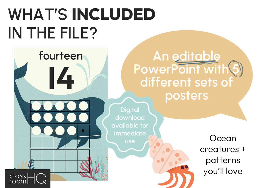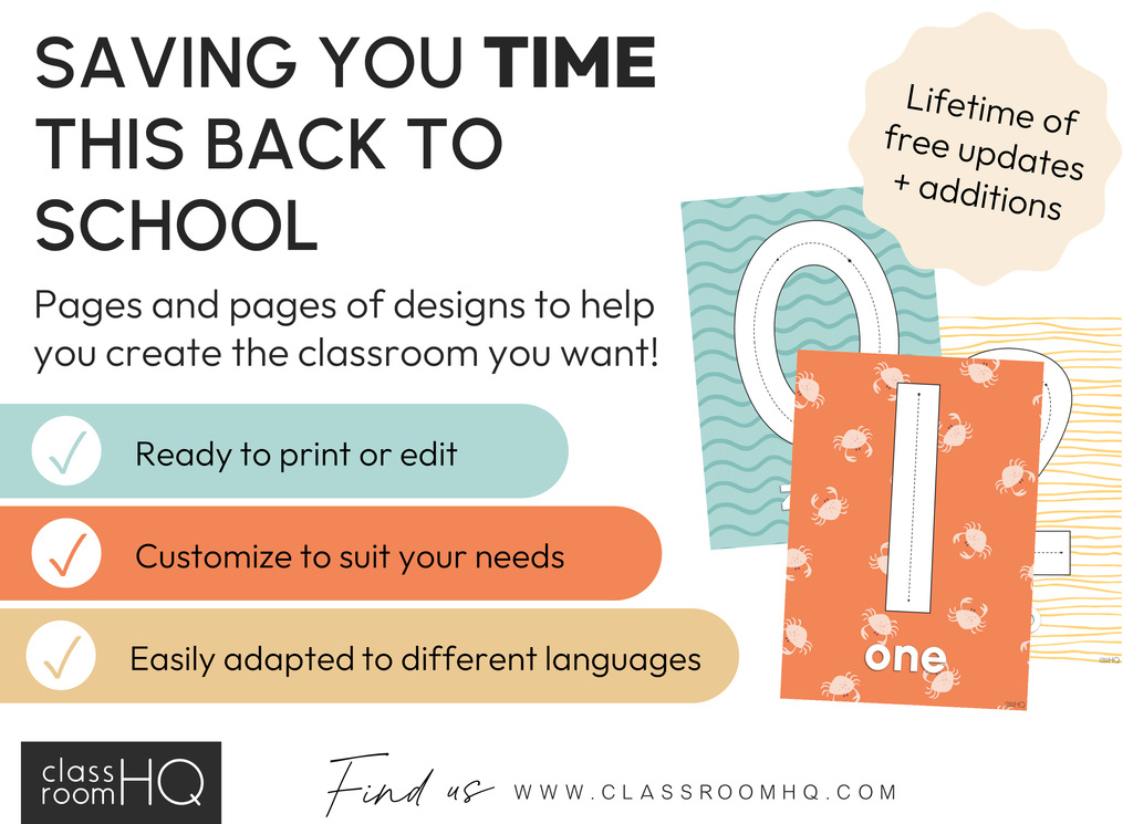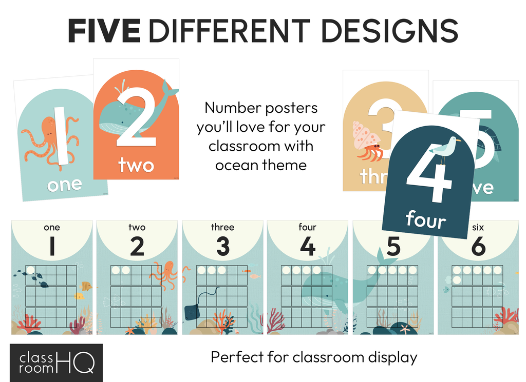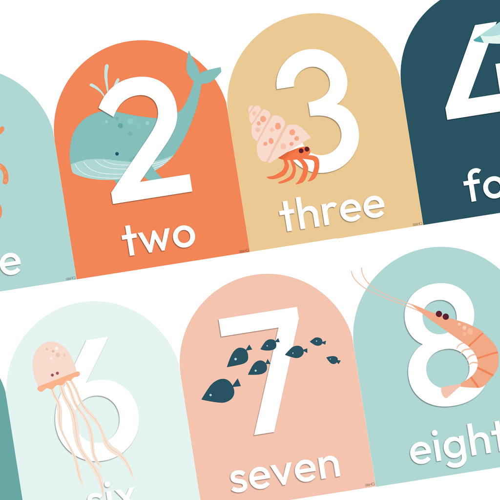 With a calming ocean theme, you'll love this collection of number posters! With it's summer sea time inspired artwork, calming colour palette and fun sea creatures, you will love this look for your classroom this school year.
