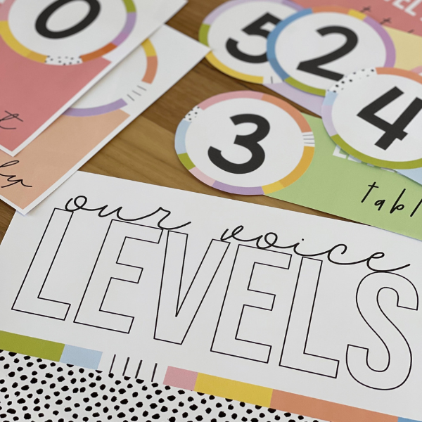 Help students monitor their voice level throughout the day using these easy to edit voice level posters. A useful classroom management tool, this voice check system is designed to help children manage their voice levels in class.