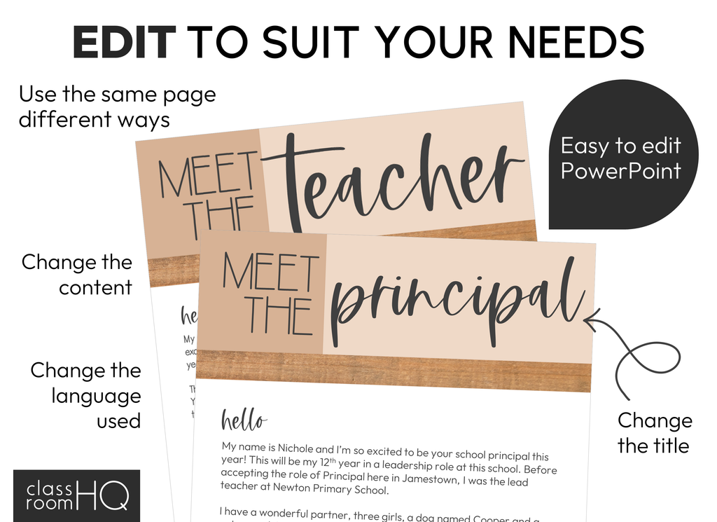 Our editable files allow you to change and customize the text so you can make it exactly what you want to fit your classroom. Simply type into the text boxes provided or add in your own to edit. You will need access to Microsoft PowerPoint to do this.