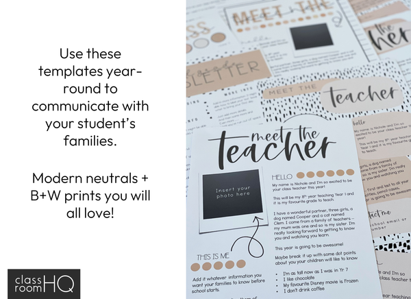 B+W NEUTRALS Meet The Teacher + Class Newsletter Pack