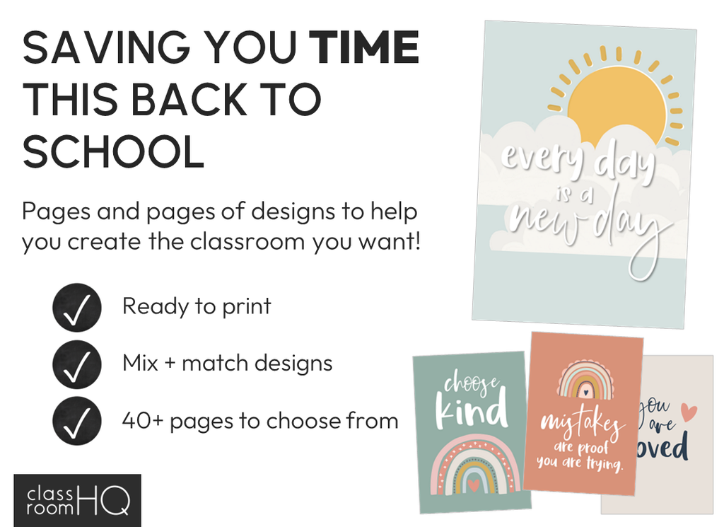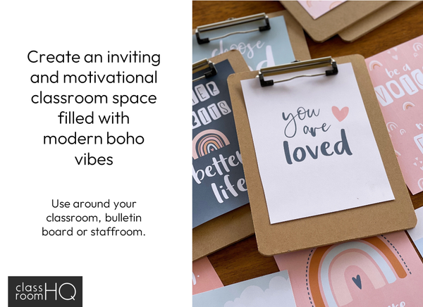 These print-and-go motivational posters can be used as bulletin board displays, hallway décor, or framed as part of an inspirational corner. They’re versatile, timeless, and designed to fit seamlessly with boho, rainbow, or minimalist classroom aesthetics.