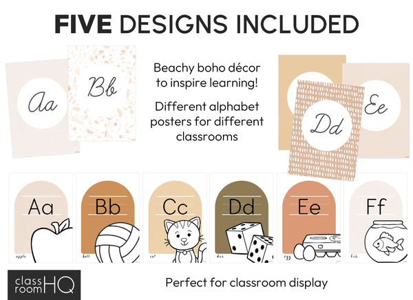 Choose from seven different alphabet poster designs - each with a modern boho color palette of calming earthy tones made to compliment the rest of our BOHO SUMMER Classroom DecorThe neutral tones will suit any grade level!