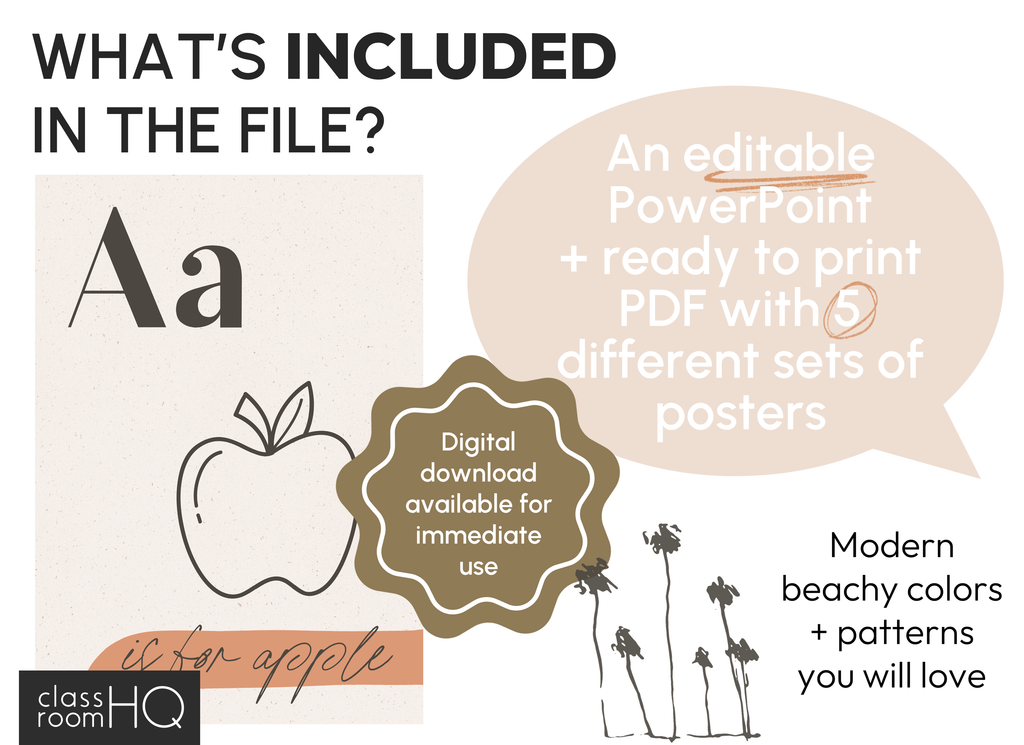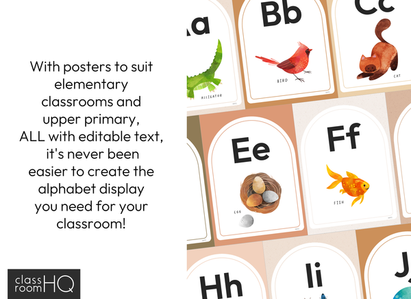 With posters to suit upper primary and three different designs incorporating alphabet images for elementary classrooms, ALL with editable text, it's never been easier to create the alphabet display you need for your classroom!