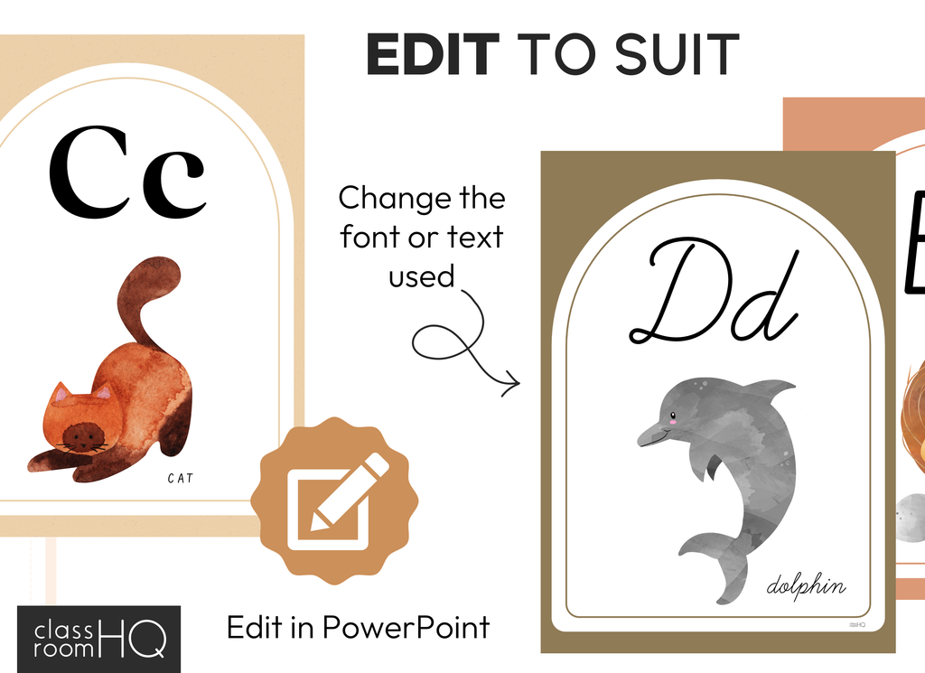 Use our ready to print PDF posters or use our easy to edit PowerPoint to select your own font - ideal for teachers needing to use particular fonts in their displays.