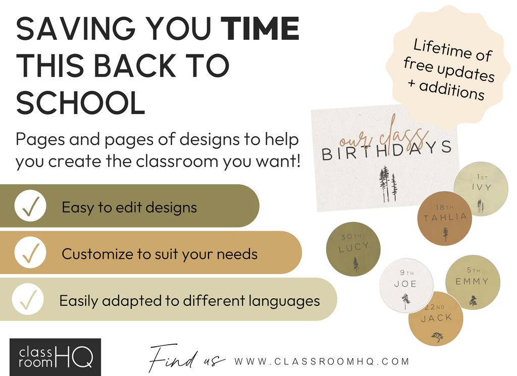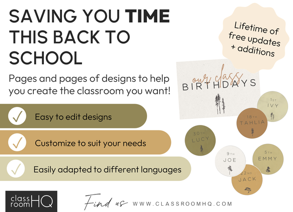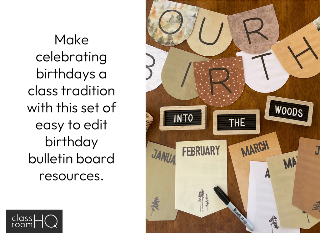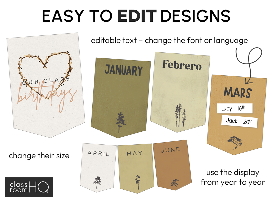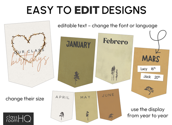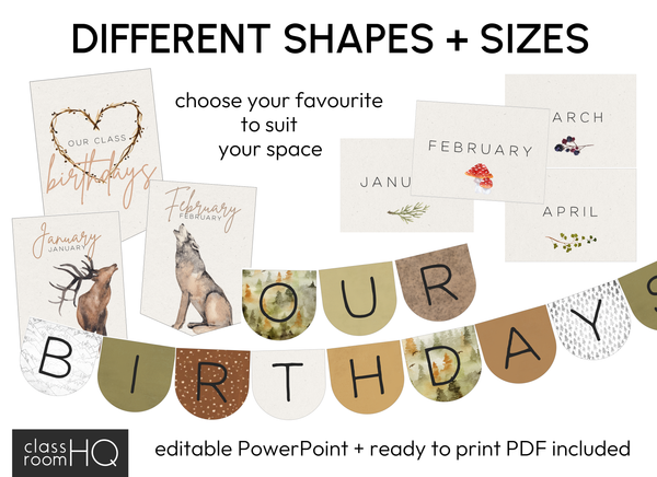 Made to compliment our rest of our INTO THE WOODS Classroom Decor, editing these birthday charts is simple and easy - just choose your design, use our fonts or add your own then press print! Use it year after year or add in all those important birthdays before you hit print!