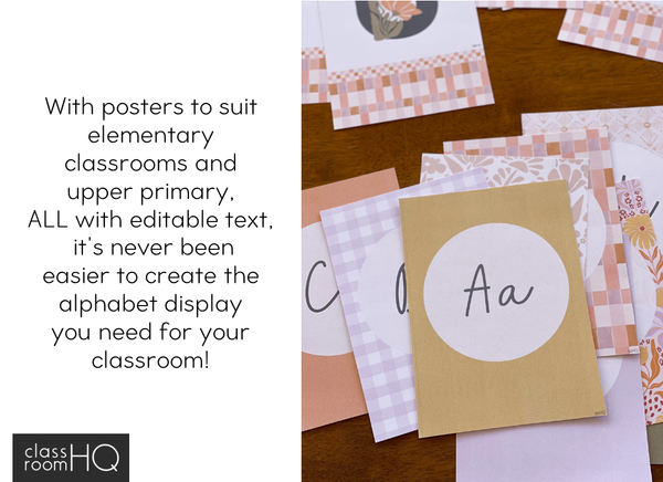 Looking for a little bit of retro boho for your classroom? Save time and print out our pre-made alphabet posters for display in your classroom or CHOOSE YOUR OWN FONT and create your own version! Perfect for teachers needing to use their own fonts.