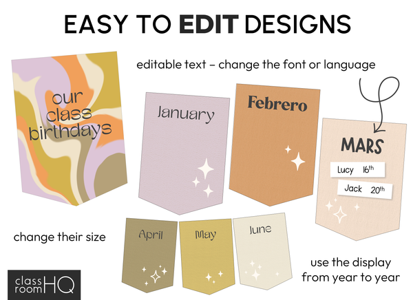 This groovy retro inspired class birthday display pack makes it easy to celebrate your students' birthdays this school year!