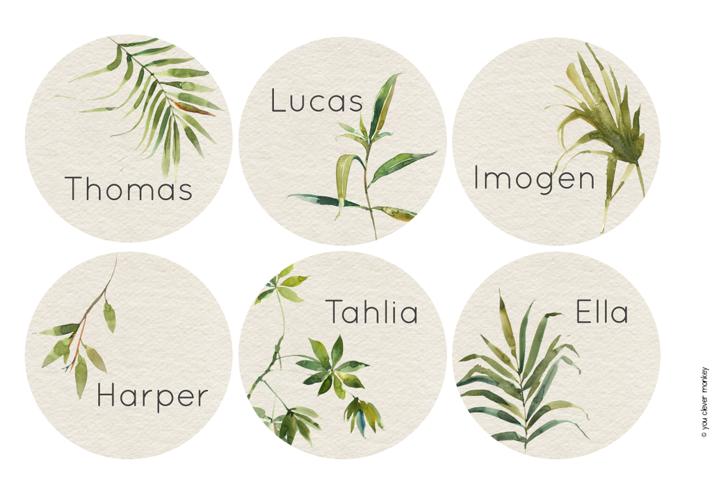 • different colored small circular name tag labels - 6 to an A4 page with editable text boxes + can be resized