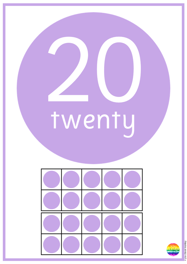 - 0-20 number posters in 4 different designs (0-10 x 2 different designs + 0-20 x 2 different designs) - 1 per A4 page