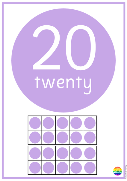 With numbers from 0-20 included, each poster includes the numeral, number word, amount displayed on 2 x ten frames displaying the correct number.