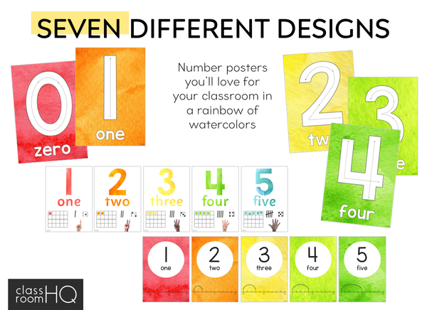 Add these colorful number posters in their rainbow of gorgeous watercolors to your classroom this back to school season! Perfect for adding a pop of color to class without overwhelming it.