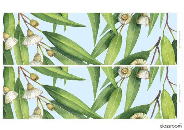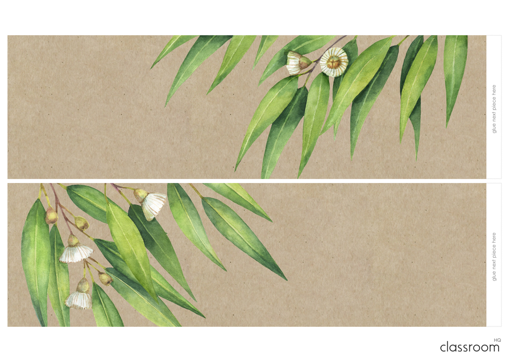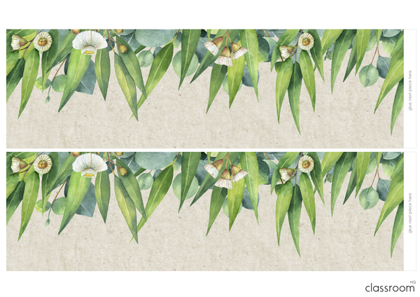 Made to match our Eucalyptus GUM LEAF Classroom Decor this helpful set of classroom bulletin board borders featuring Australian Eucalyptus designs can be used to decorate your bulletin boards, whiteboards, doors and classroom pin boards.