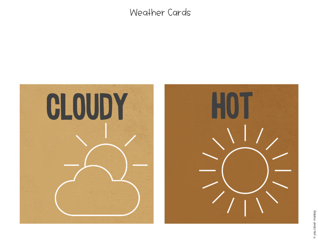 • Weather Cards (neutral backgrounds + editable text) - 2 to an A4 page