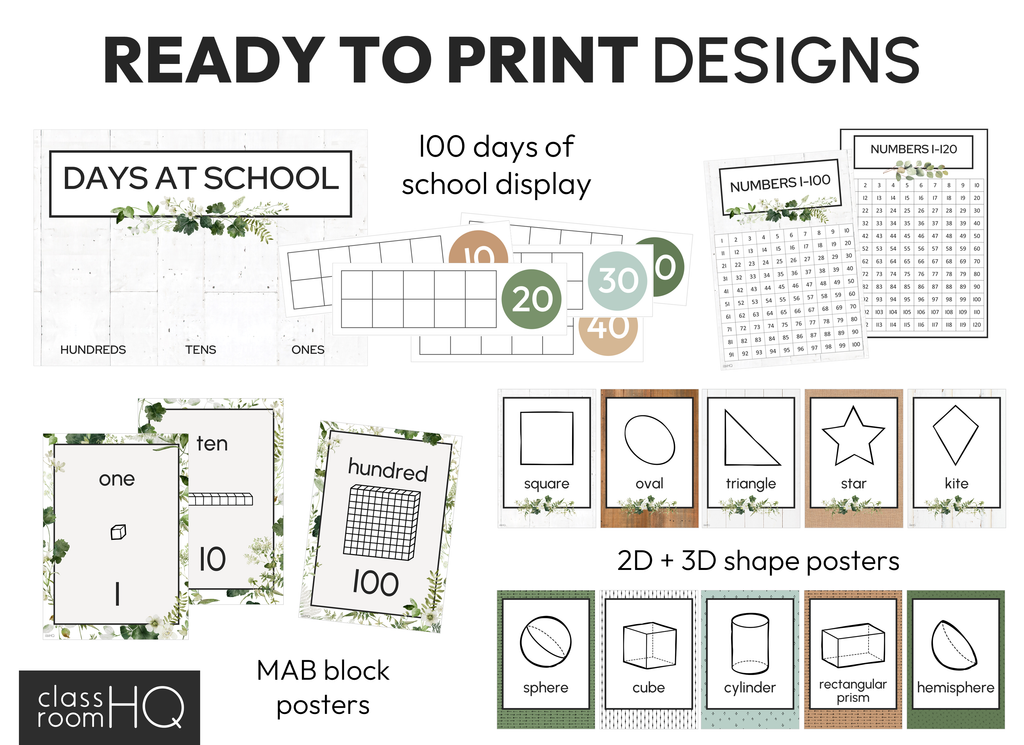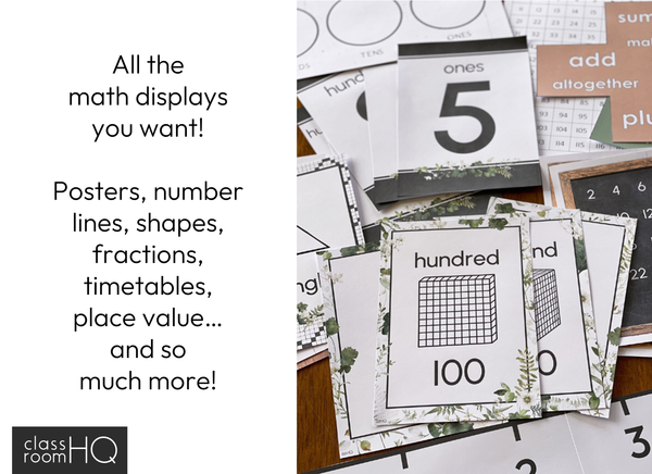 This farmhouse inspired Math Resources Pack is designed to help teachers bring math to life in the classroom. It includes clear classroom math display resources to help inspire students to get engaged and excited about math. Perfect for Early Years classroom!