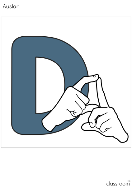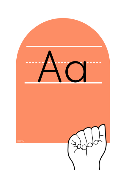 Our square posters are perfect for smaller display spaces and include the upper case letter (font cannot be edited) with ASL or Auslan sign.