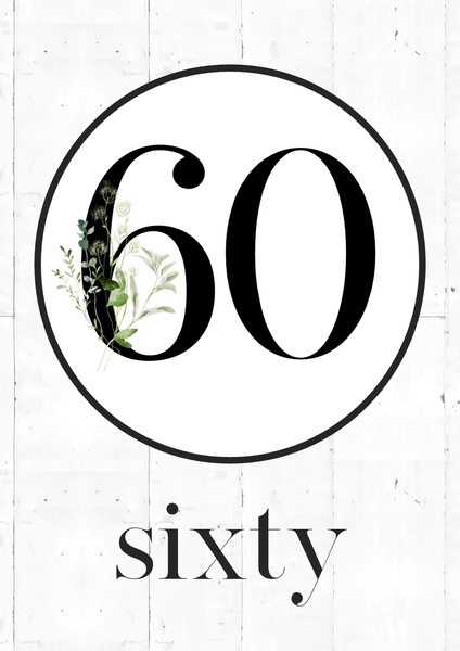 0-100 decade number posters (numeral and word displayed on white vintage metal background + leafy botanical watercolor artwork) 1 per A4 page