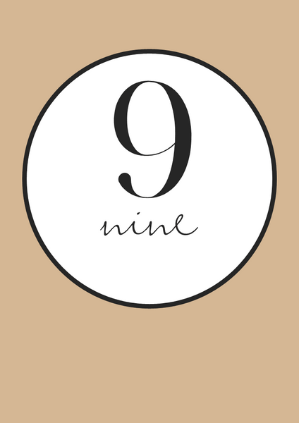0-30 number posters with numeral, number word mix of colored backgrounds and black and white hand drawn leaf print - 1 per A4 page