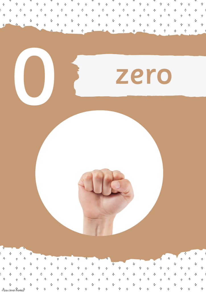 0-10 number posters with numeral, number word and amount with photos of real hands displayed as numbers on different earthy colored backgrounds + black and white artwork - 1 per A4 page
