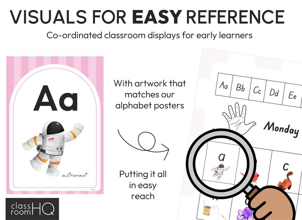 Each mat brings together commonly used classroom information in one clear layout, helping students work more independently during reading, writing, and maths lessons. The subtle pastel tones create a calm, uncluttered look that suits neutral, modern, or soft rainbow classroom themes while remaining highly functional for everyday classroom use.