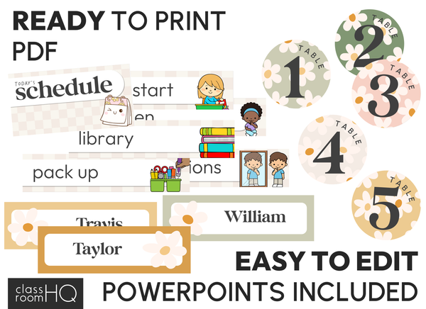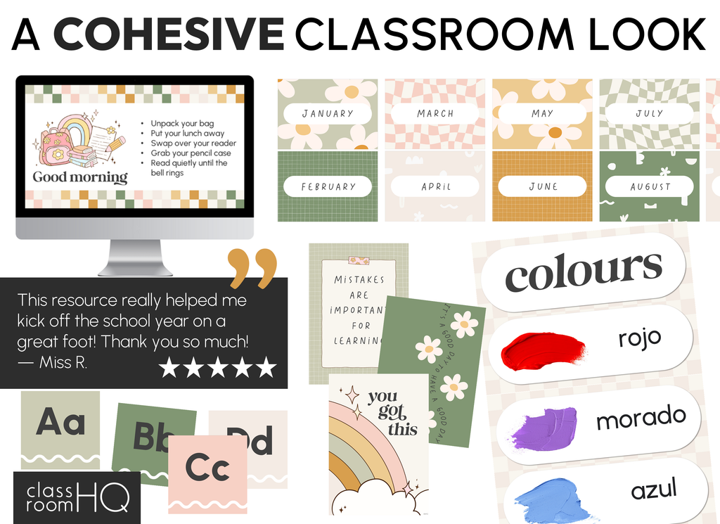 This HAZY DAISY collection has everything you need to create a cohesive and visually appealing environment for your students without the overwhelm. You won't be disappointed in how you will be able to use this pack!